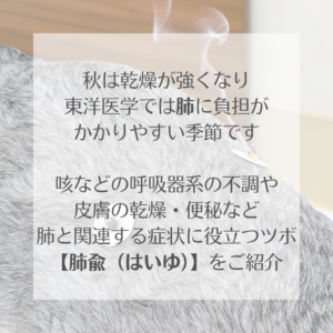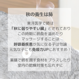 秋は乾燥が強くなり東洋医学では肺に負担がかかりやすい季節です