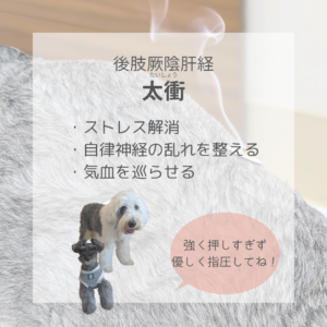 気の巡りを良くする『太衝』後肢の甲 親指と人差し指の骨が合流する手前のくぼみ