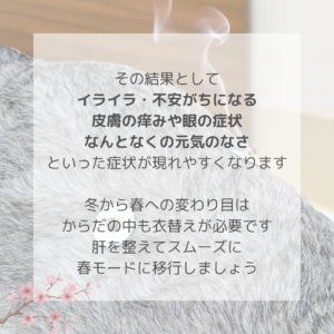 春は気が高ぶりやすくなる事から様々な不調が出やすくなります