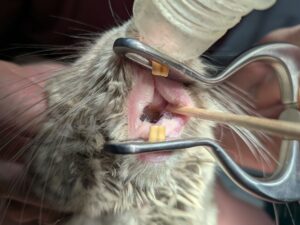 まずは無麻酔下で口の中を観察します。