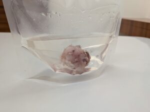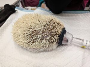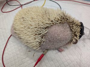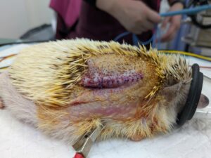 ハリネズミさんは麻酔をかけないと抜糸ができない可能性があるため、吸収糸という溶ける糸を使って皮膚の縫合を行いました。