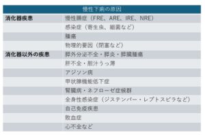 下痢といっても原因は様々で、中には消化管以外の病気から下痢を起こすものもあります。